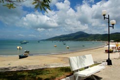 Sendo a mais extensa do município é banhada por duas enseadas que são chamadas de Mar de Dentro com 1 km de mar calmo e tranqüilo, e Mar de Fora com 3 km de mar aberto e boas ondas para o surfe, suas águas nos meses de julho e agosto servem de refúgio às baleias vindas da Antártida. Petiscos, Peixes e frutos do mar são servidos nos restaurantes e barzinhos à beira mar enquanto o visitante aprecia a bela paisagem.