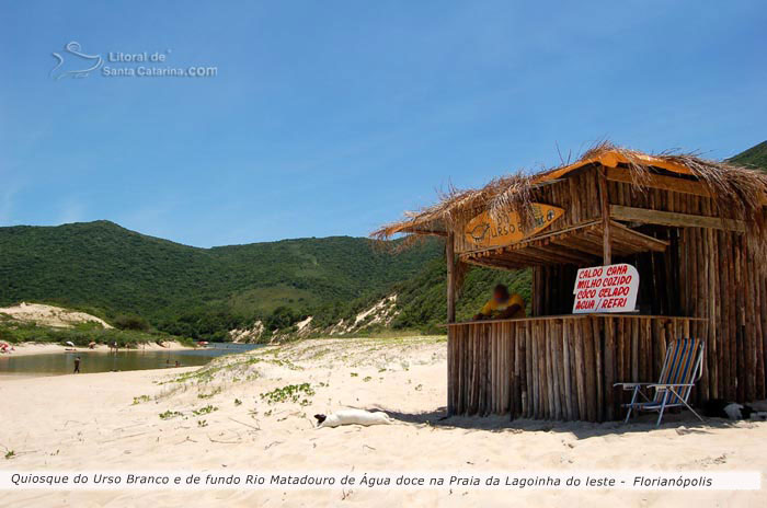 Quiosque do urso branco e de fundo o rio matadouro de água doce em floripa, lagoa do leste