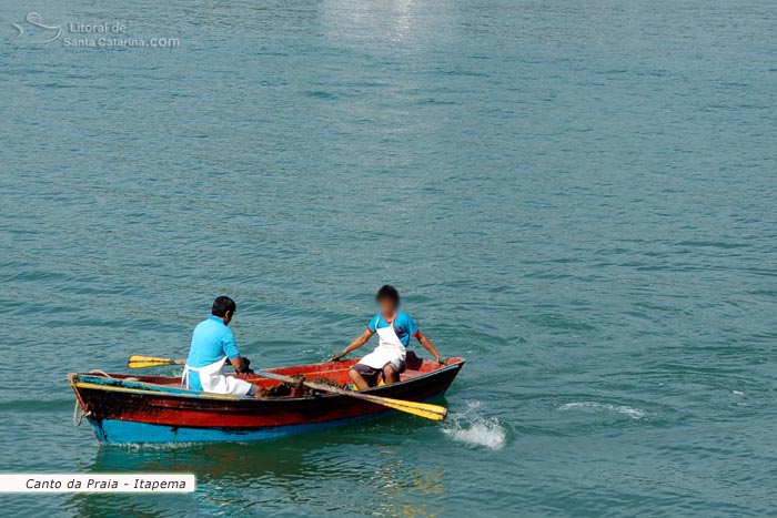 Canto da Praia em Itapema, pescadores voltando de mais uma jornada de trabalho.