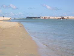 praia é preciso fazer a travessia de balsa sobre os Molhes da Barra.